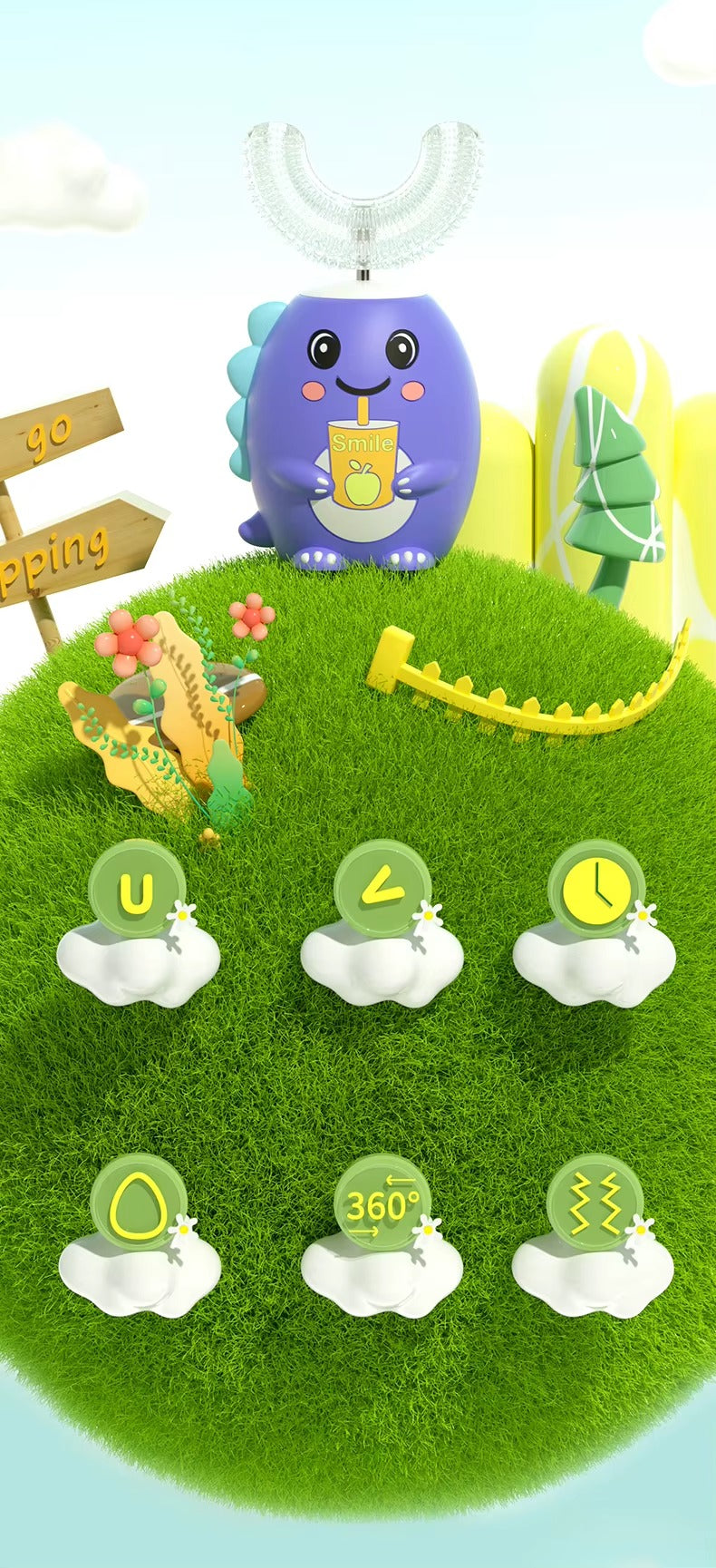 Perché i bambini lo adorano?🦖 Pulisce tutti i denti insieme in 30 secondi🌟 Ha una luce speciale che fa brillare il sorriso🔋 Si ricarica velocissimo🤩 È morbido, colorato e super divertente da usare!Ogni giorno potrai sorridere come un piccolo dinosauro felice!Con Luxxury Smile™, lavarsi i denti non è mai stato così facile e divertente! 🦕✨